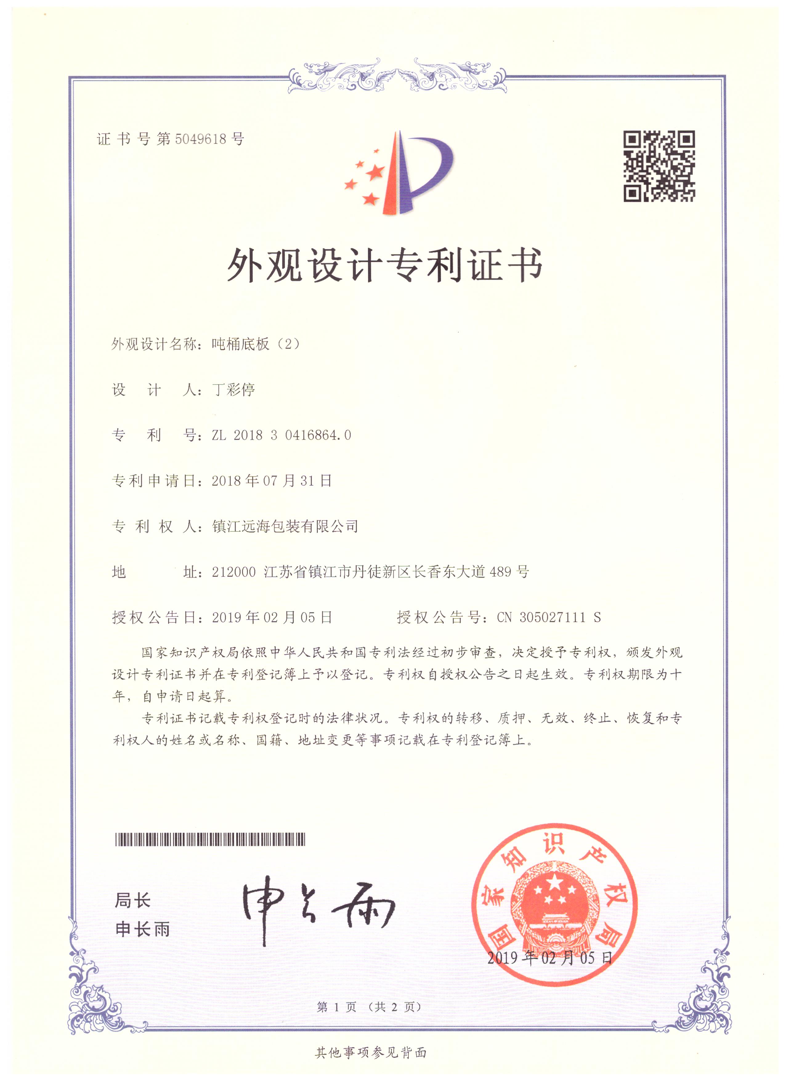 鎮江遠海包裝有限公司成立于2014年8月,是一家專注于生產IBC噸桶及零配件的企業,主要產品有各種型號的底板、橫梁、底角、標牌、鍍鋅焊管等。公司擁有相關產品的外觀型和實用型8項專利。